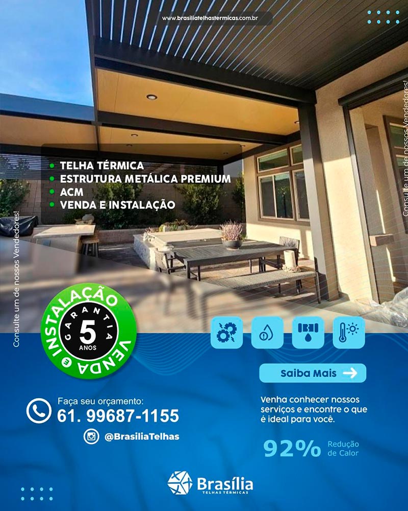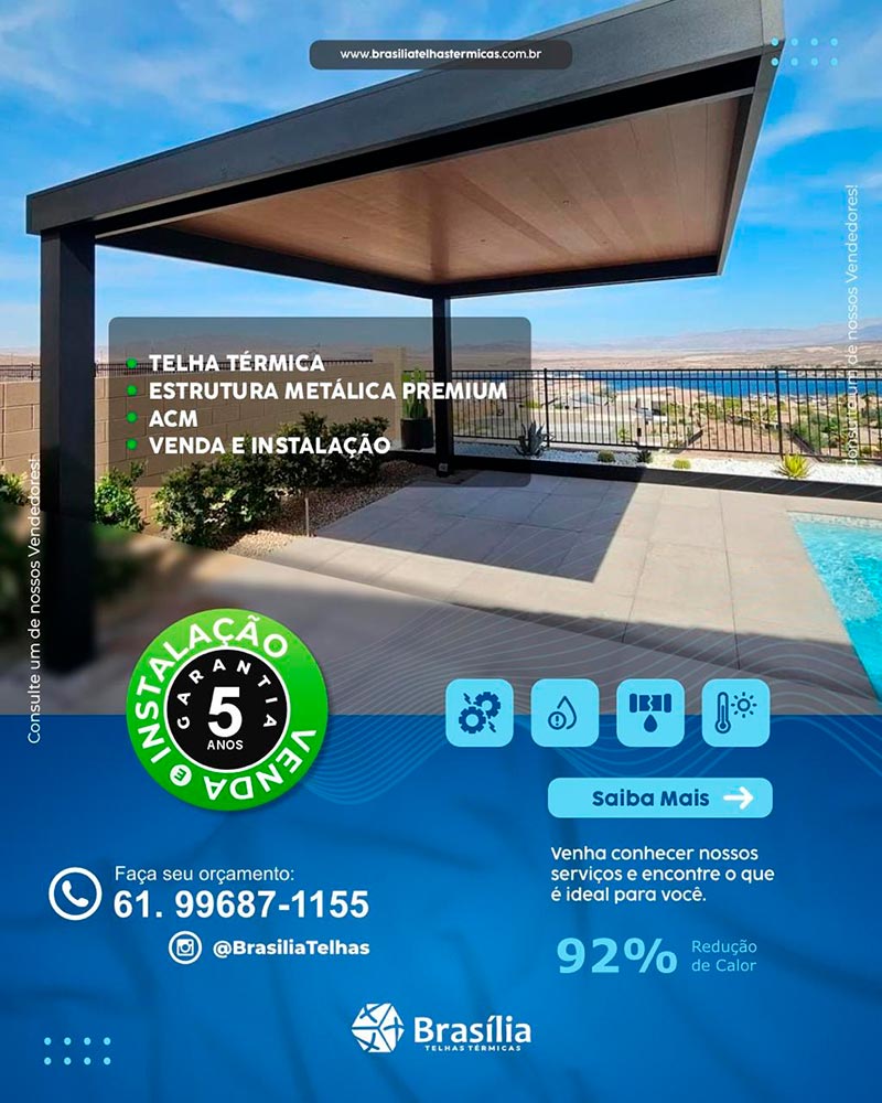 Se você está pensando em melhorar o isolamento térmico e acústico da sua construção ou quer garantir uma solução sustentável e duradoura para o seu projeto, entre em contato conosco agora mesmo. Nossa empresa de telhas térmicas em Brasília oferece soluções personalizadas para atender às suas necessidades específicas, desde pequenas reformas residenciais até grandes empreendimentos industriais e comerciais.